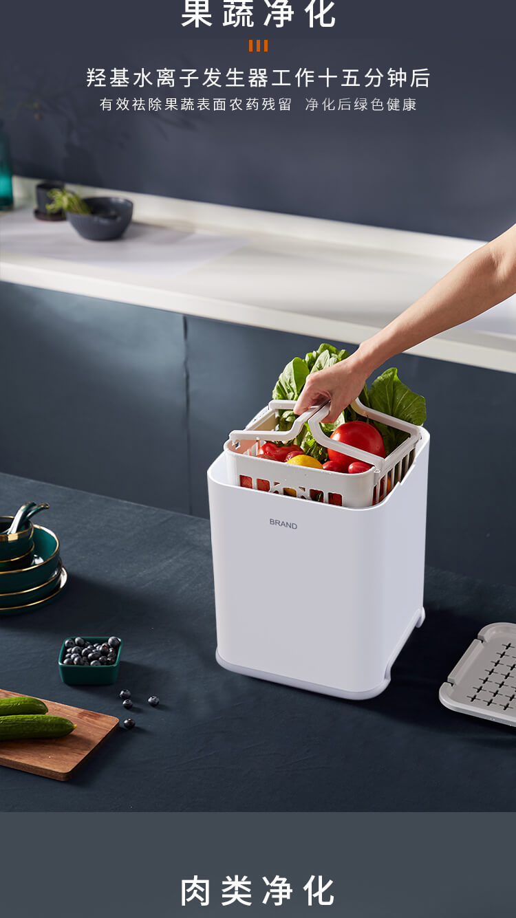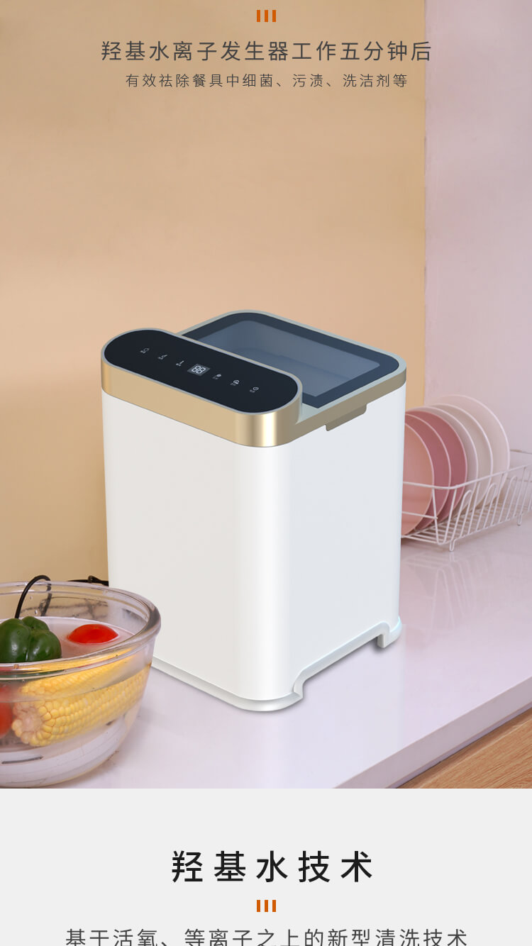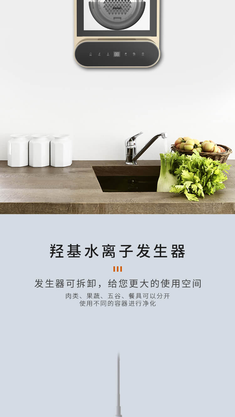 產(chǎn)品介紹:STY05E采用臺(tái)上壁掛一體式設(shè)計(jì),產(chǎn)品帶有壁掛繞線板,可輕松固定在廚房各個(gè)角落,給廚房騰出更多空間,產(chǎn)品采用羥基水技術(shù)以水為原料,不添加任何化學(xué)物質(zhì),通電后產(chǎn)生粒子,使水分子裂解為羥基自由基能,有效的降解食材表面細(xì)菌、農(nóng)殘、激素。啟動(dòng)10分鐘羥基水電解有效祛除果蔬表面農(nóng)藥殘留,凈化后綠色健康。羥基水電解有效祛除餐具中細(xì)菌、污漬、洗潔劑等..