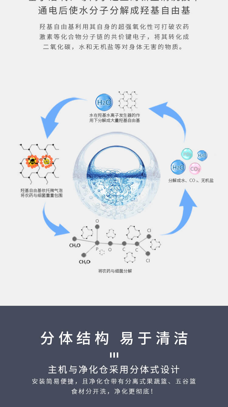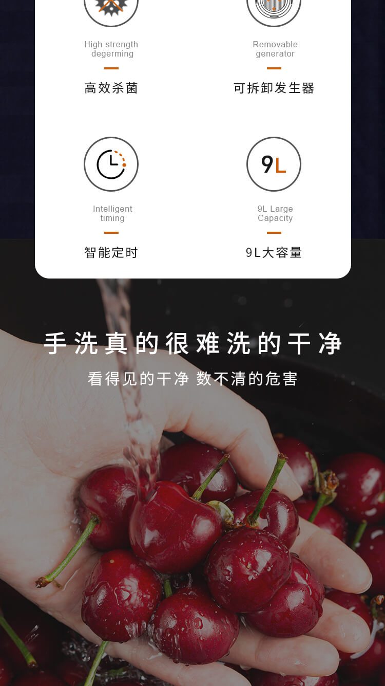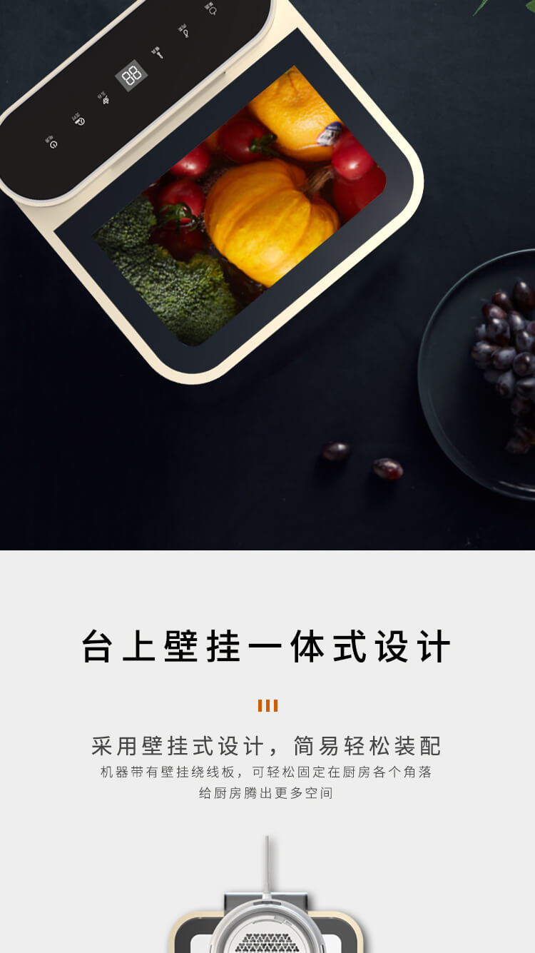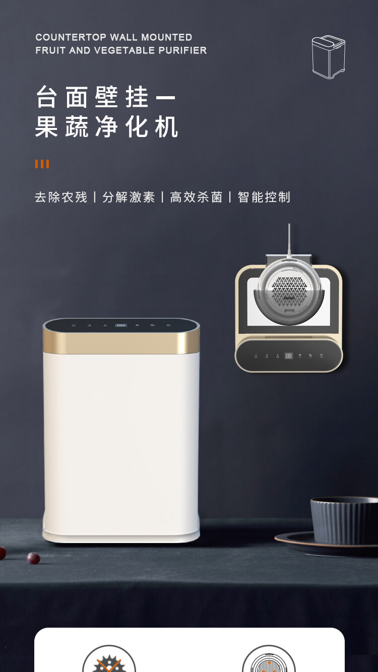 產(chǎn)品介紹:STY05E采用臺(tái)上壁掛一體式設(shè)計(jì),產(chǎn)品帶有壁掛繞線板,可輕松固定在廚房各個(gè)角落,給廚房騰出更多空間,產(chǎn)品采用羥基水技術(shù)以水為原料,不添加任何化學(xué)物質(zhì),通電后產(chǎn)生粒子,使水分子裂解為羥基自由基能,有效的降解食材表面細(xì)菌、農(nóng)殘、激素。啟動(dòng)10分鐘羥基水電解有效祛除果蔬表面農(nóng)藥殘留,凈化后綠色健康。羥基水電解有效祛除餐具中細(xì)菌、污漬、洗潔劑等..